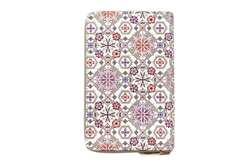 お薬手帳ポーチ ポーチ パスポートケース 白 オフホワイト ピンク オリエント 朱鷺 小花柄 革 文庫革 天然皮革 浅草文庫 友禅染 型友禅 手描き友禅 診察券 保険証 カード15枚収納 ケース 使える 便利 小銭入れ ラウンドファスナー 半透明 江戸小紋 和装 着物 No.10-5078