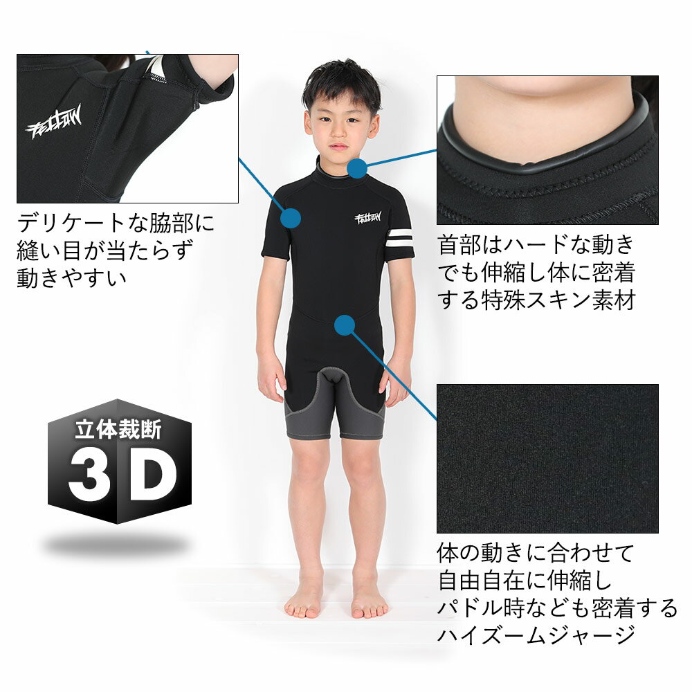 ウェットスーツ スプリング ALL2mm キッズ 子供 ジュニア FELLOW 子供用 バックジップ 半袖 ウエット サーフィン SUP シュノーケル ウエットスーツ JPSA 日本規格 大きいサイズ ジャージタイプ ストレッチ 防水システム